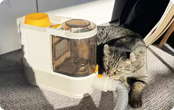 Trim and brush your pet effortlessly while capturing the mess with the built-in vacuum of IN01.