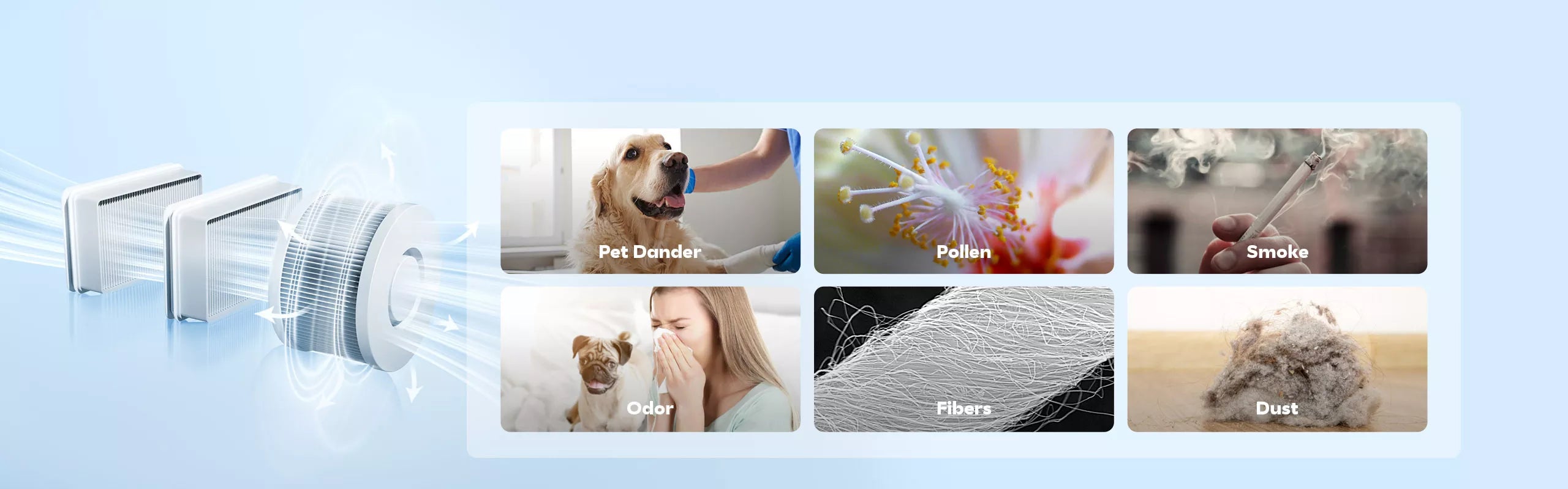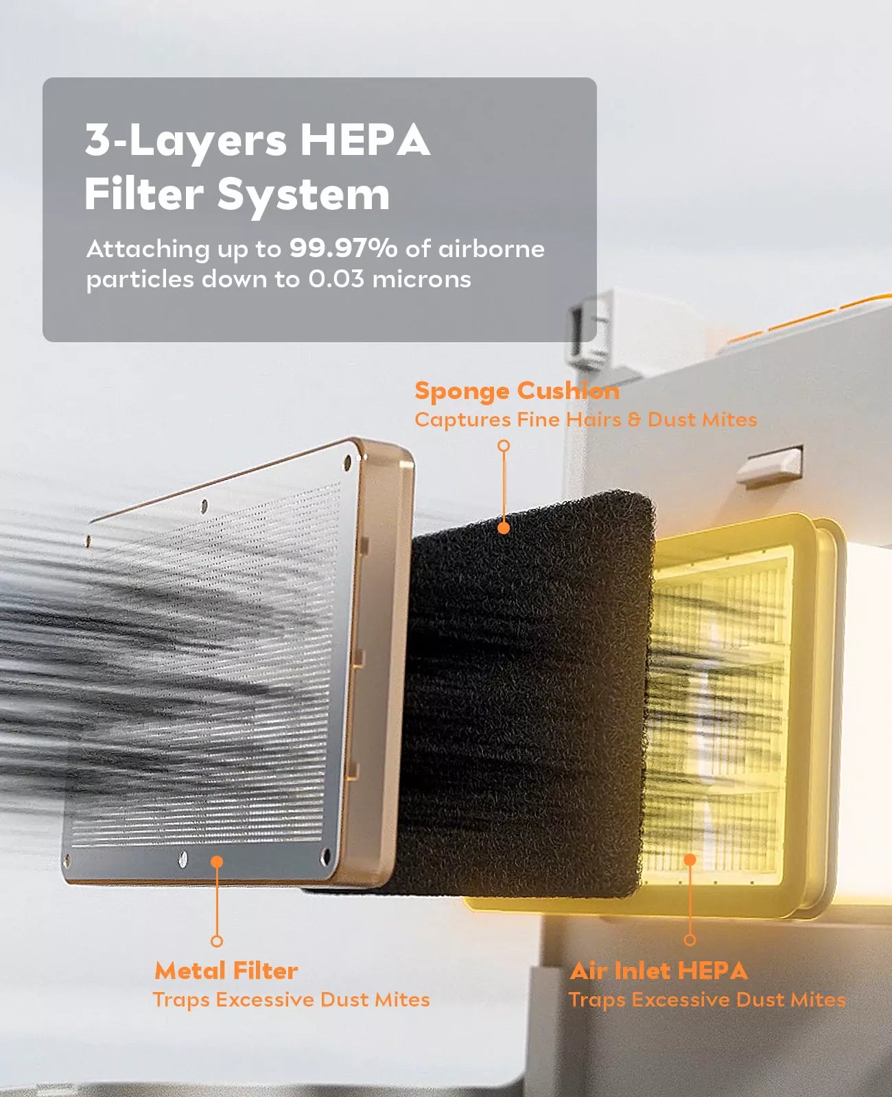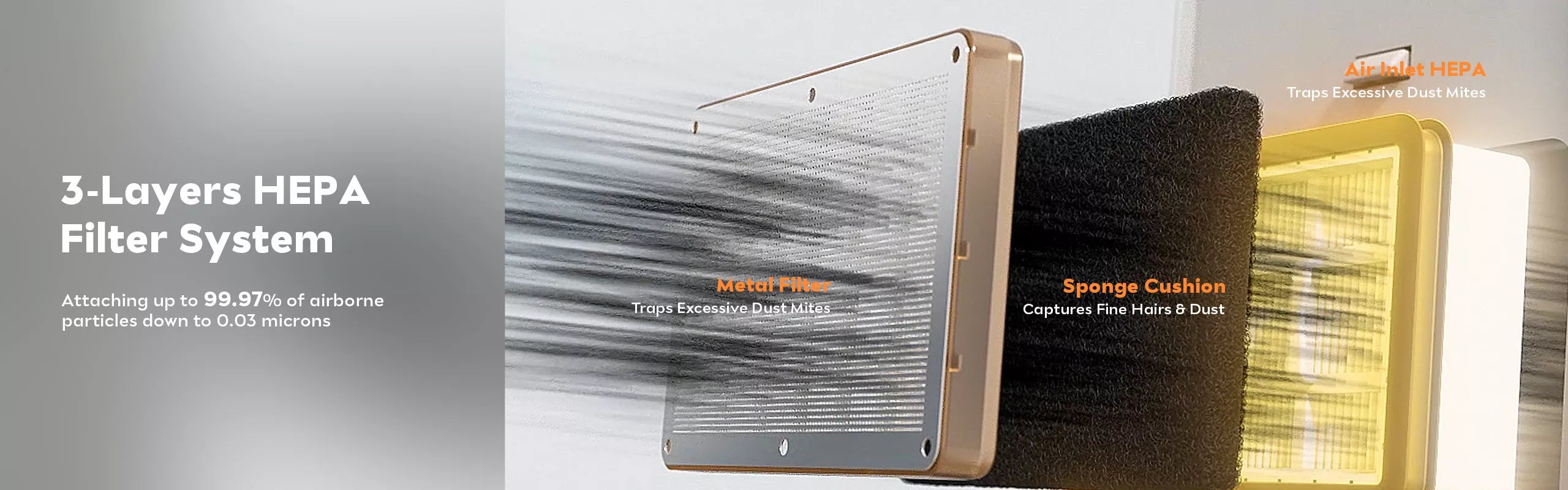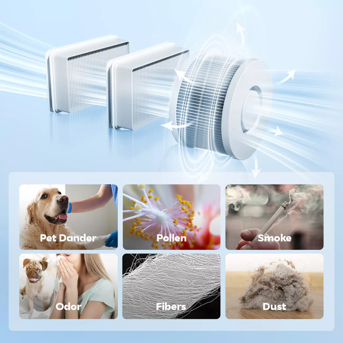 Effectively captures up to 99.97% of dust, pollen, mold, bacteria, and airborne particles as small as 0.3 microns (Β΅m).